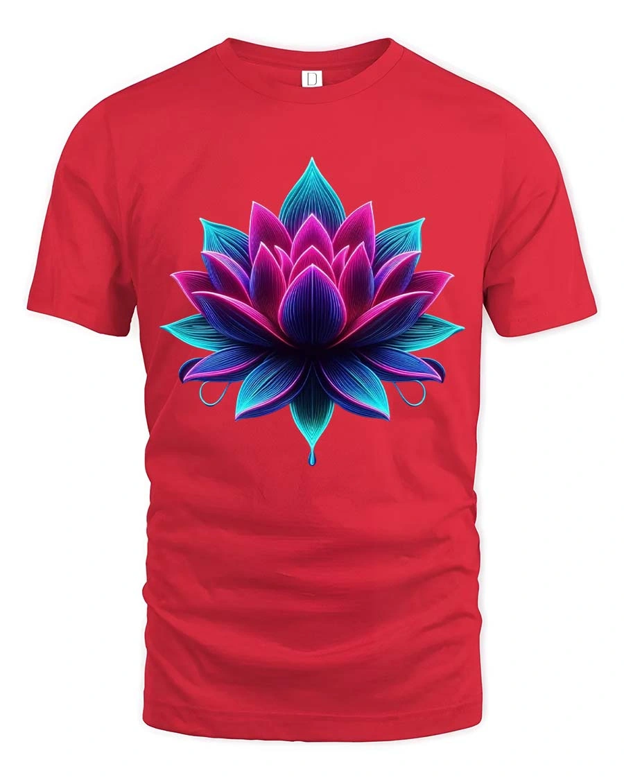 Vibrant Neon Lotus Flower Spiritual Art T Shirt - red t-shirt on white background