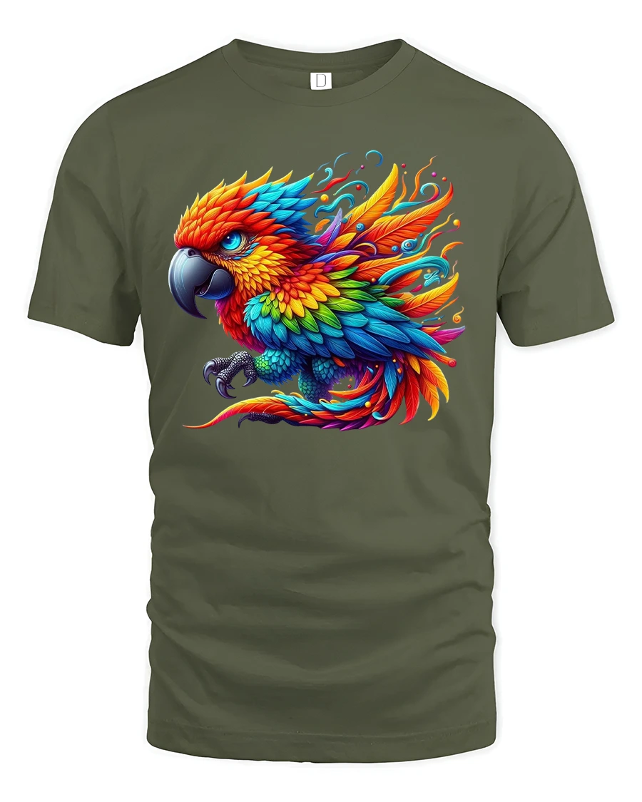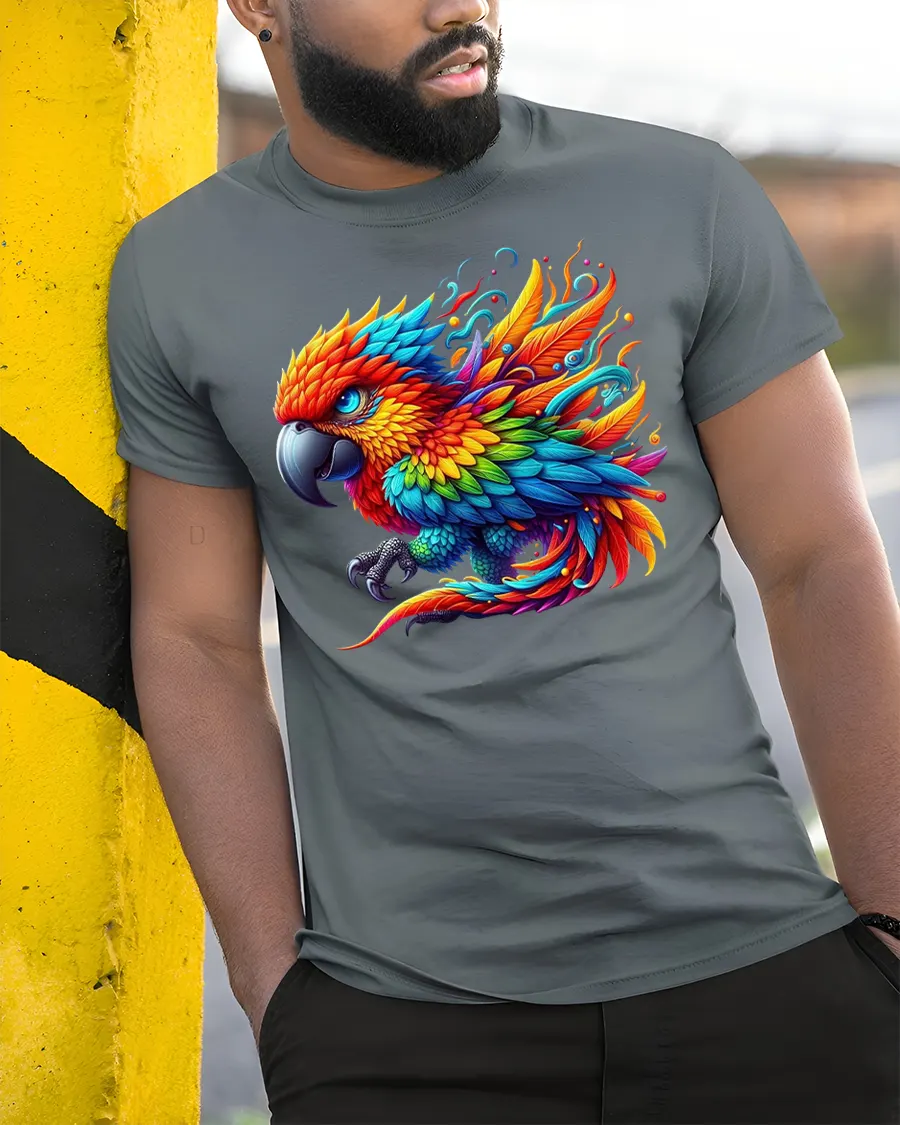 Perfect for tropical vibes or summer adventures, this t-shirt captures the spirit of paradise and creativity. Whether you’re at the beach, a festival, or just want to brighten your day, the parrot’s dynamic energy and artistic detail make it a real conversation starter.