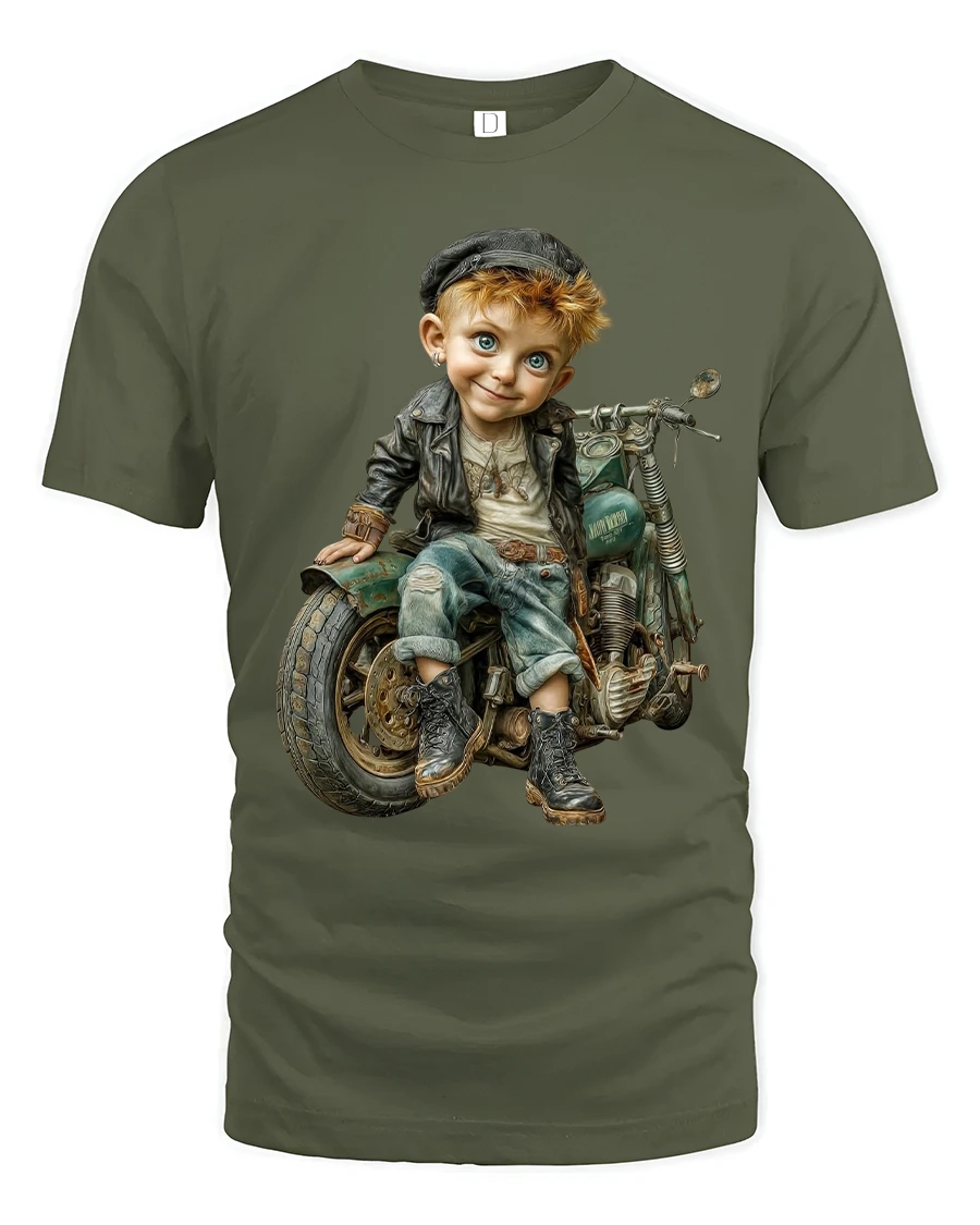 The Vintage Rebel Kid Motorcycle Graphic T Shirt With Cool Retro Vibe captures fearless personality and timeless biker style.