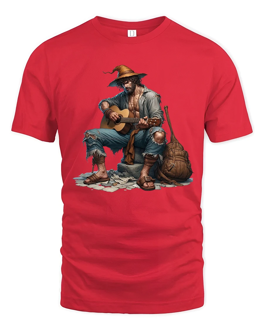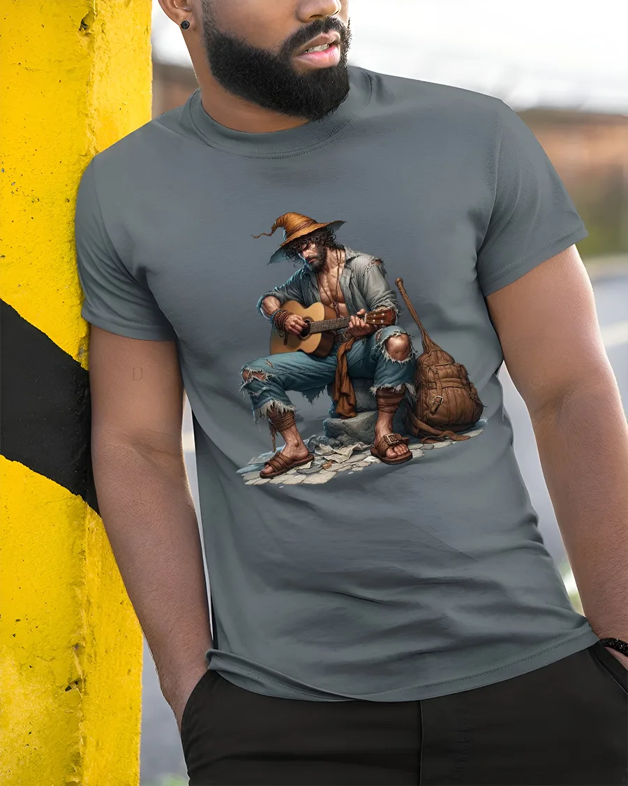 The Wandering Guitar Player Street Music Illustration Graphic T Shirt captures the raw emotion of a soulful musician lost in melody.