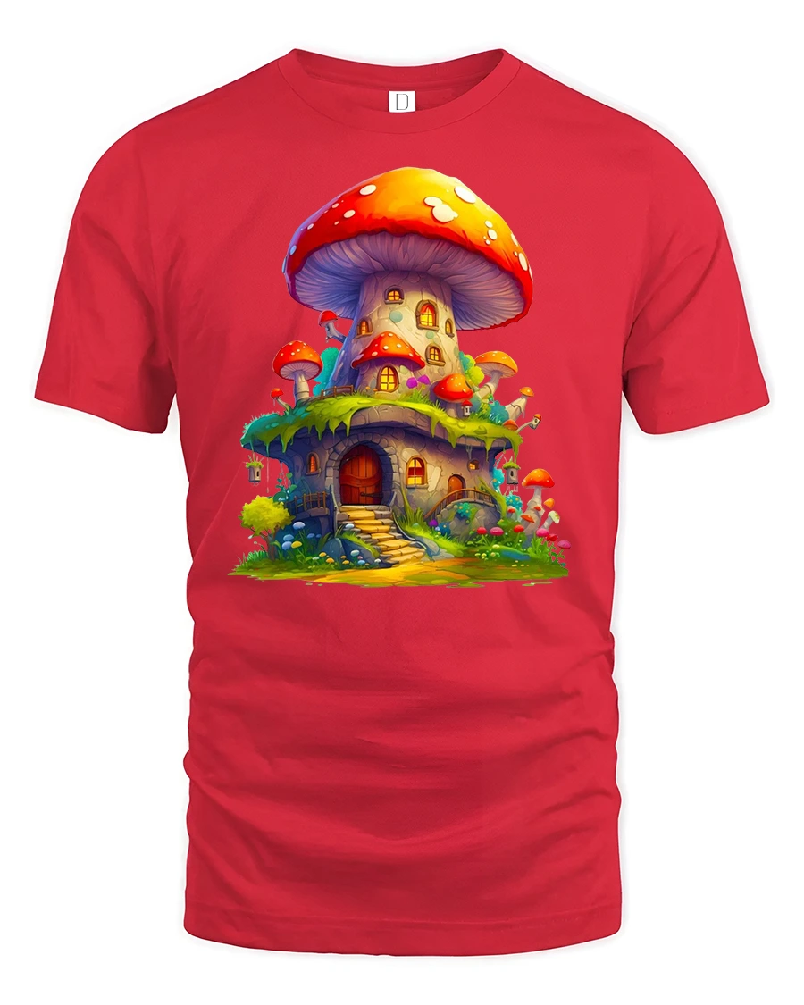 Whimsical Mushroom House Fantasy Cottage Art Tee brings a burst of magic and color to your wardrobe with its enchanting fairy-tale artwork. Featuring a bright and beautifully detailed mushroom house surrounded by lush greenery, colorful mini toadstools, and warm glowing windows, this tshirt feels like a doorway into a fantasy world. The vibrant colors and charming design make it perfect for anyone who loves fantasy landscapes, fairy homes, or imaginative art.