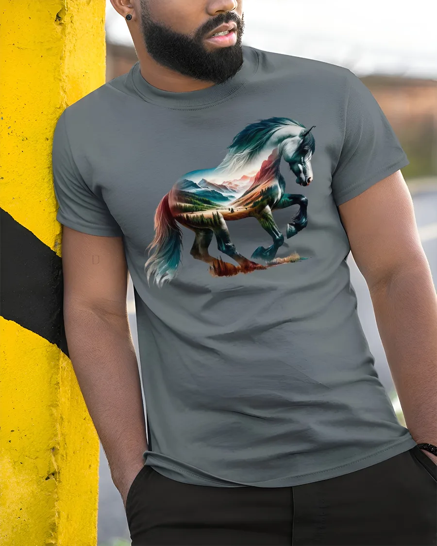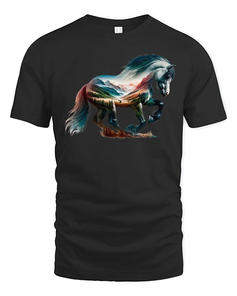 The Wild Horse Mountain Landscape Nature Art T-Shirt is a must-have for horse lovers and free spirits.