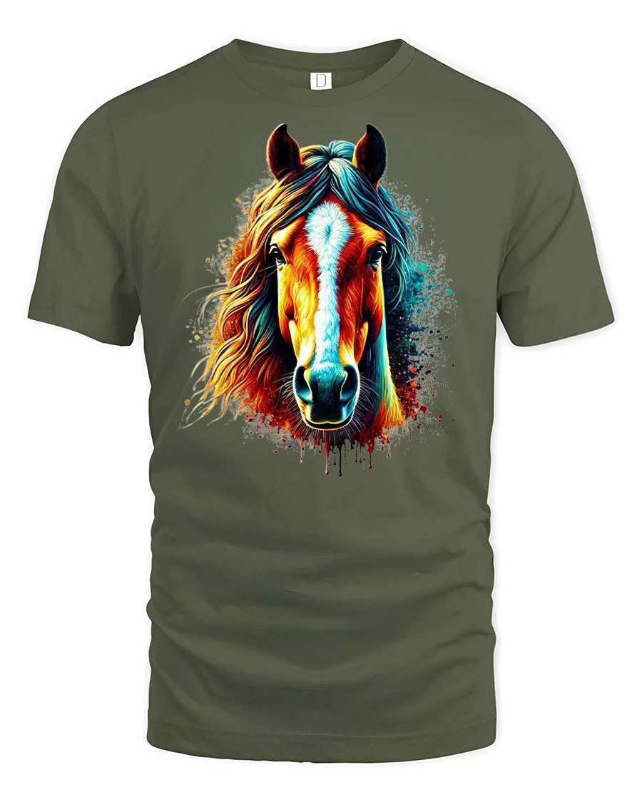 Make a bold statement with the Wild Spirit Horse Graphic Tee with Colorful Mane, a vibrant and stylish design perfect for horse lovers, western fashion fans, and anyone who admires powerful artwork. Featuring a stunning horse head with neon colors and paint-splash details, this tee combines wild spirit with artistic flair.