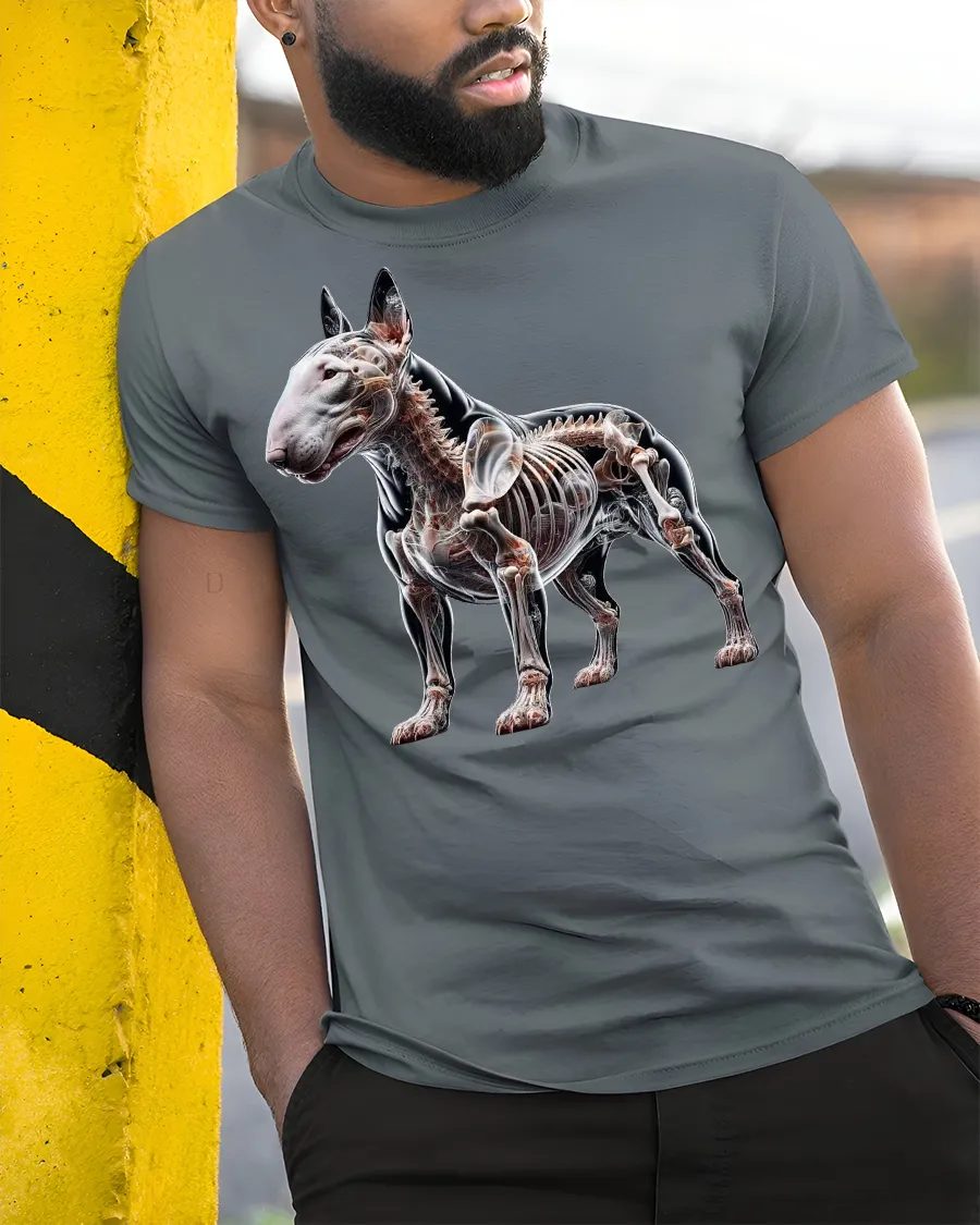 X-Ray Bulldog Skeleton Art Graphic Style Tee is a bold and eye-catching design perfect for dog lovers, vet techs, and fans of unique anatomical artwork. Featuring a detailed x-ray style illustration of a bull terrier showing bones, joints, and muscle outlines, this tshirt delivers a striking visual that instantly stands out. It’s the ideal mix of artistic, scientific, and edgy, making it a great conversation starter.