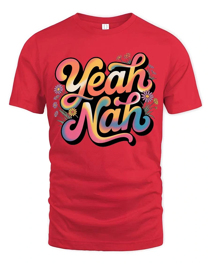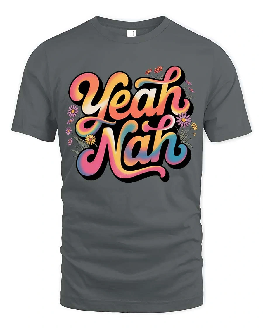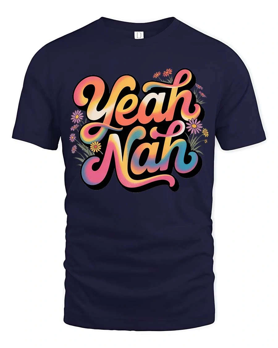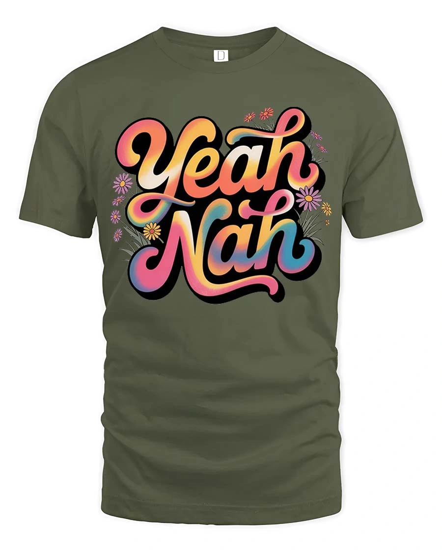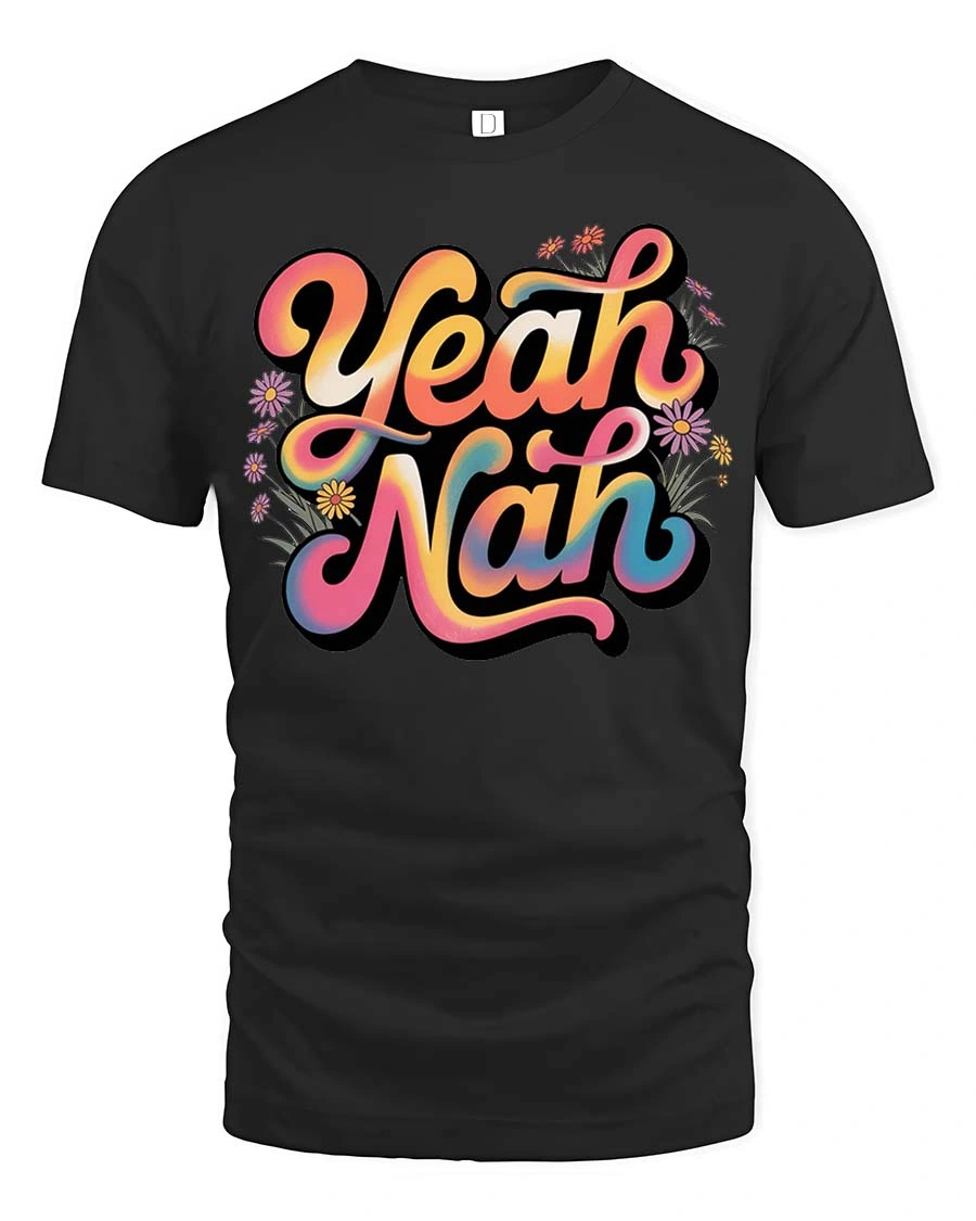 Yeah Nah Funny Aussie Slang Retro Vibes Graphic T Shirt brings a playful twist to everyday style with its bold and colorful typography design.