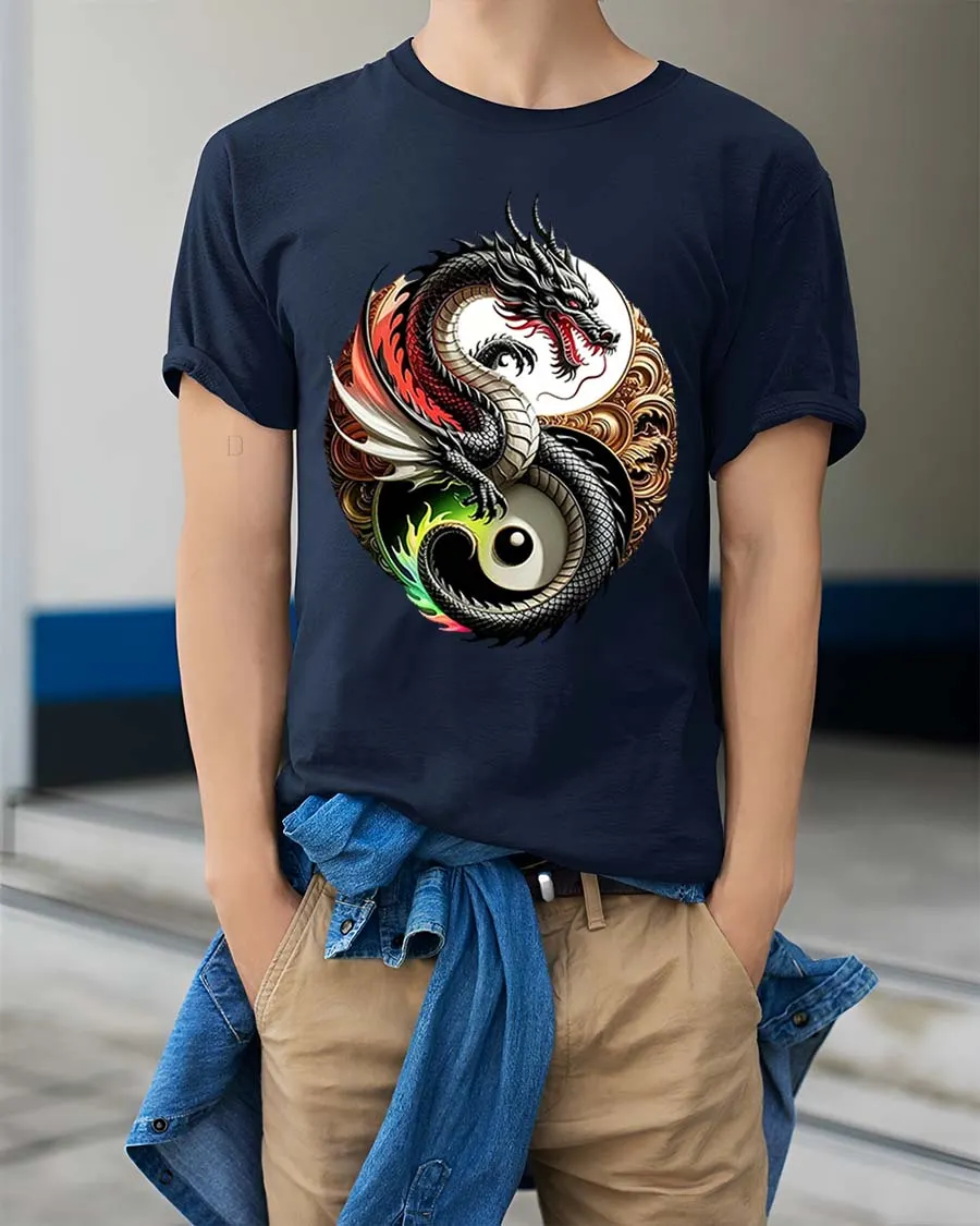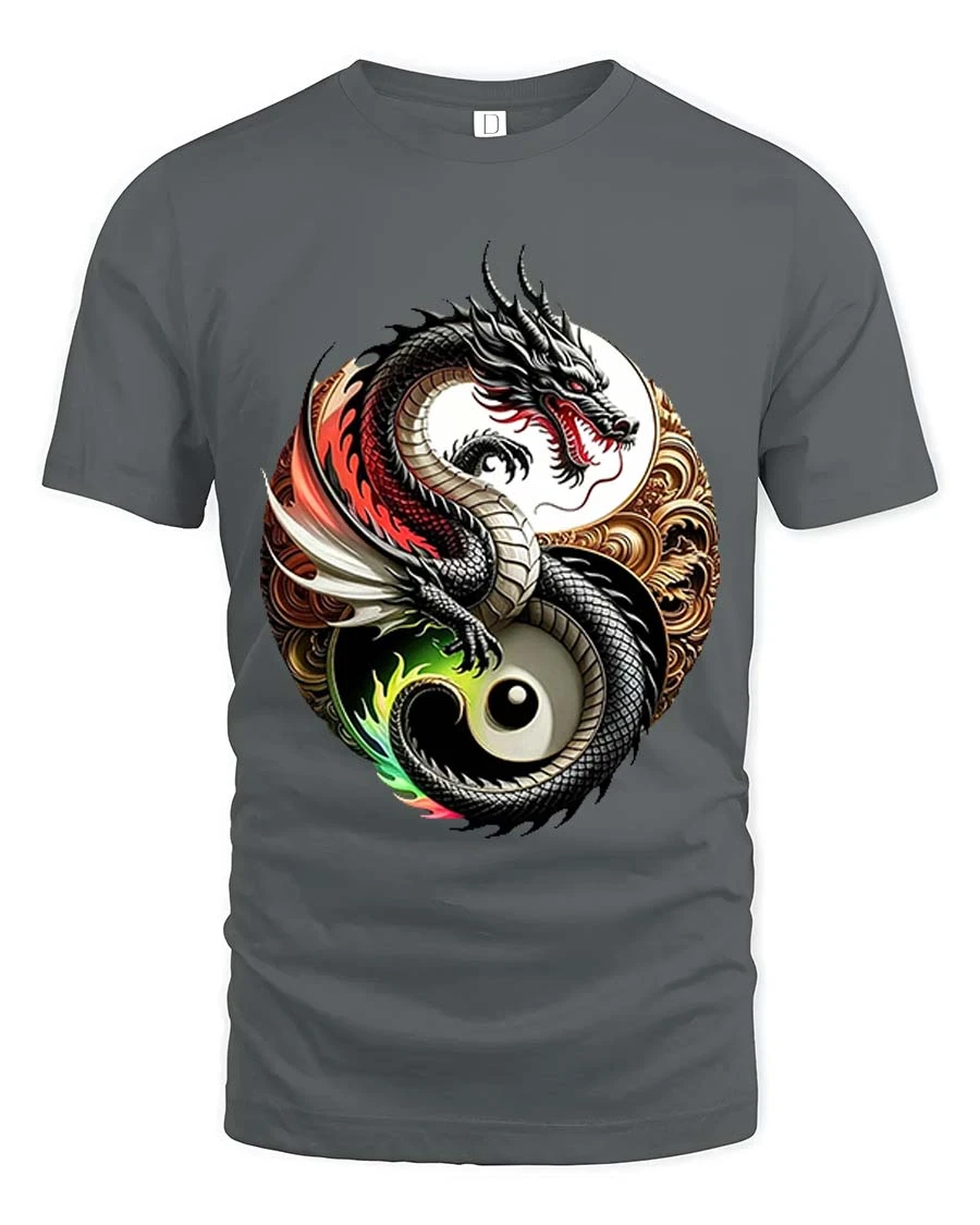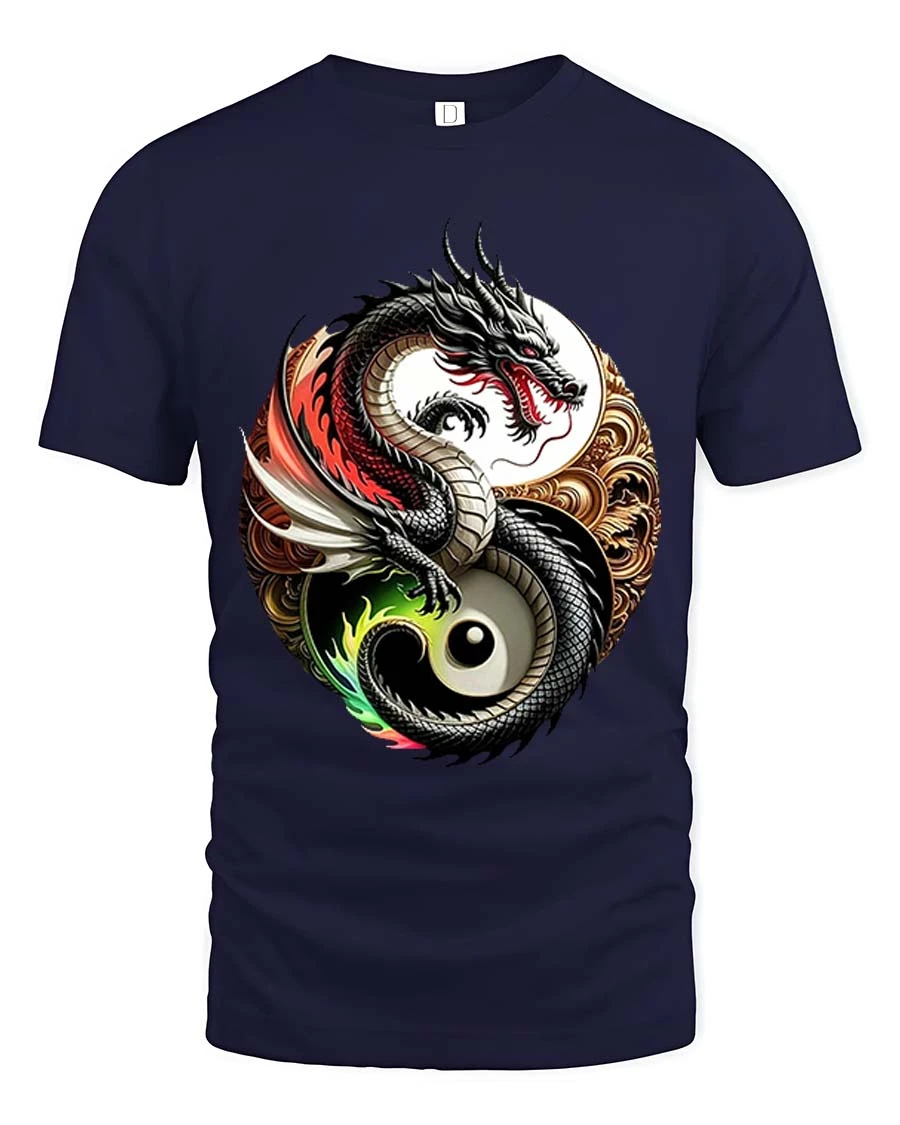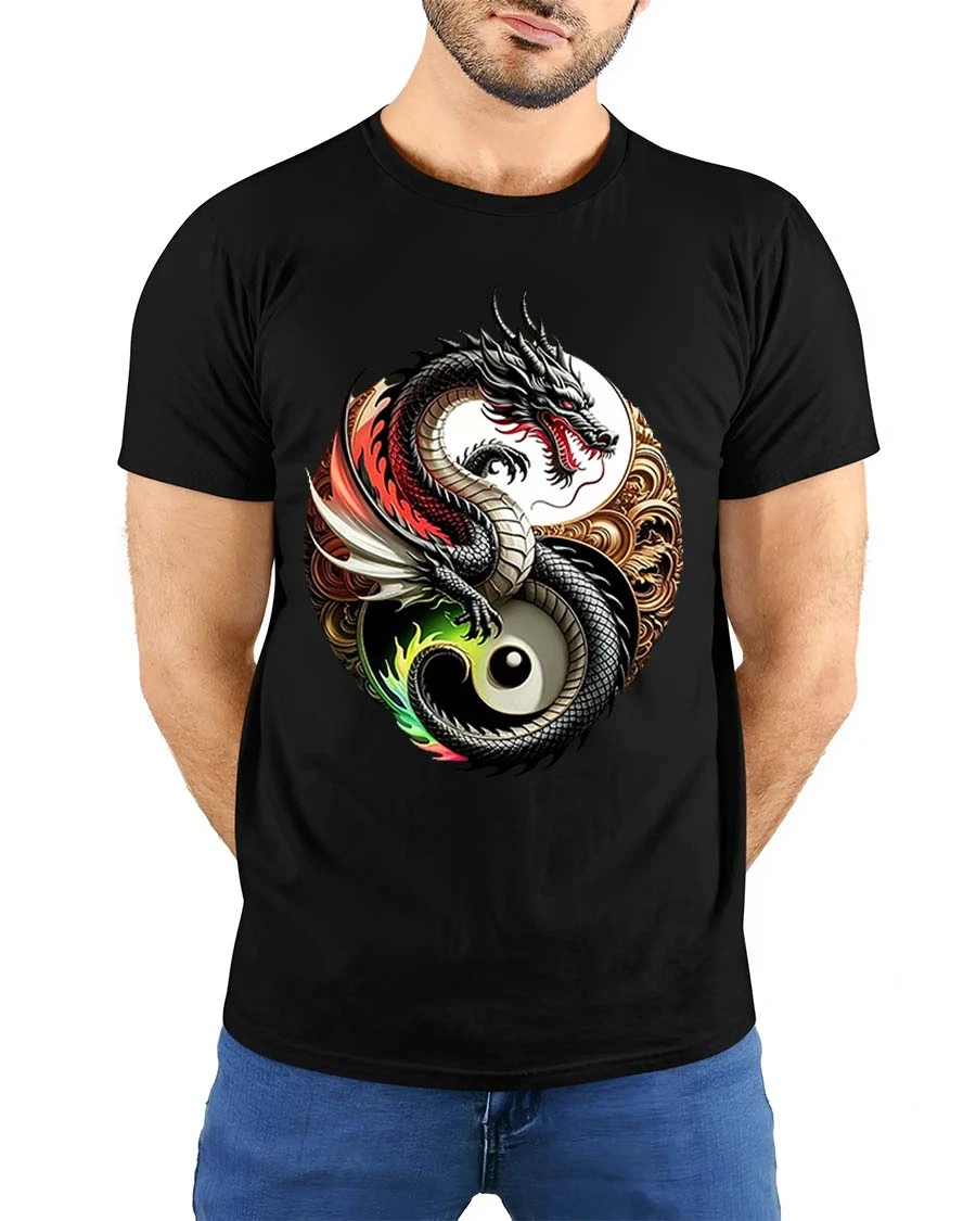 Yin Yang Dragon Balance Symbol Asian Art Graphic T Shirt showcases a powerful blend of mythology and symbolism.