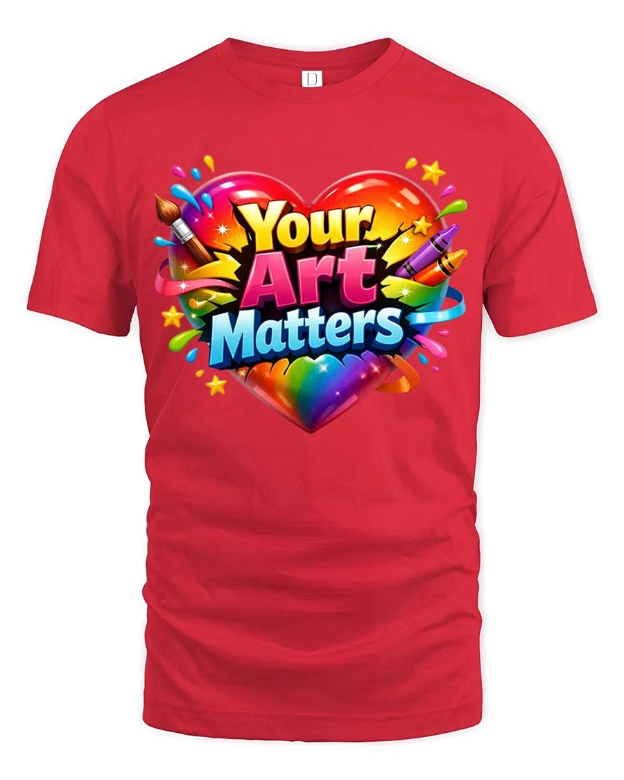 Your Art Matters Colorful Heart Creative Graphic T Shirt - red t-shirt on white background
