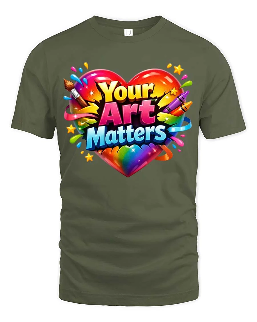 Your Art Matters Colorful Heart Creative Graphic T Shirt - military green t-shirt on white background