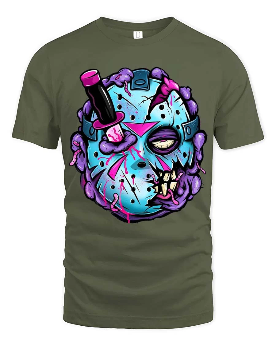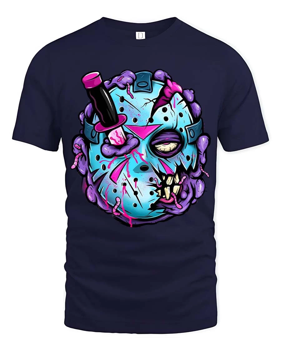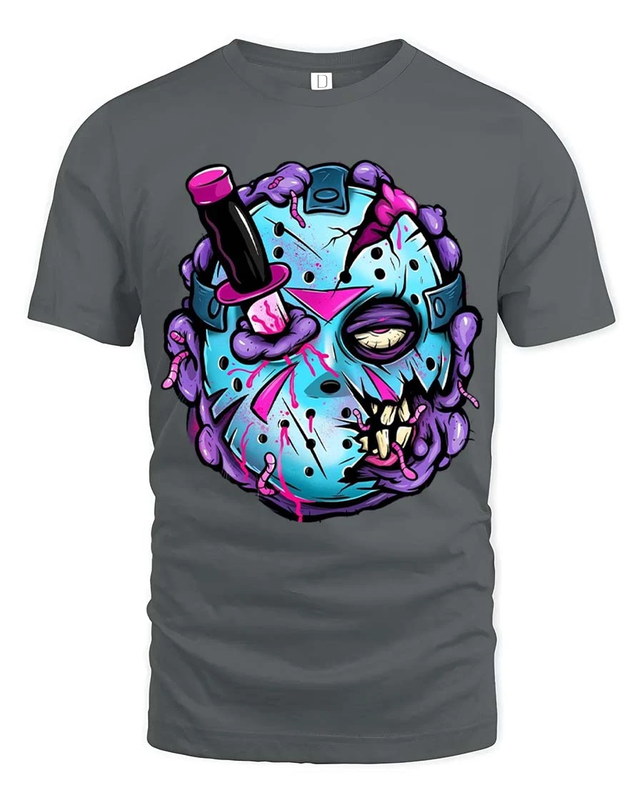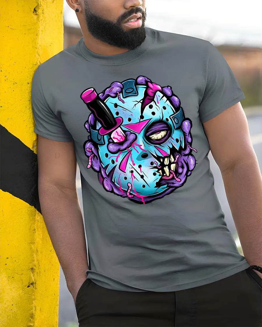 Zombie Hockey Mask Graphic T Shirt Creepy Funny Streetwear brings a bold and eye catching vibe to your everyday style.