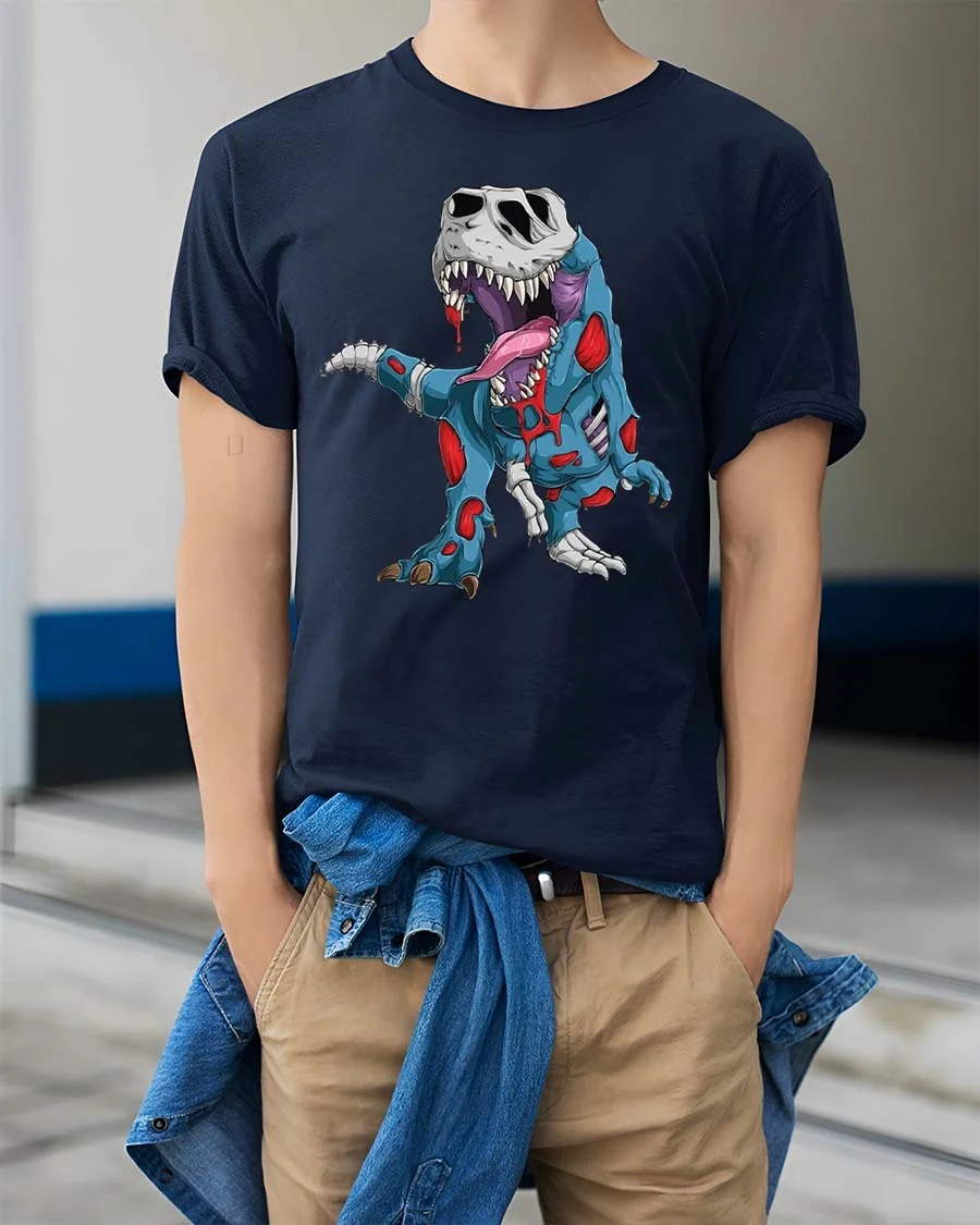 Perfect for dinosaur fans and lovers of quirky designs, this tee delivers creativity, fun, and a touch of spooky attitude.
